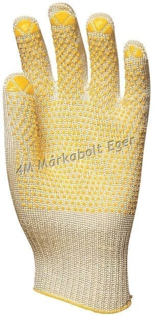 4456 Kötött Vékony Fehér Abralon/Nylon Kesztyű, Sárga Pöttyös