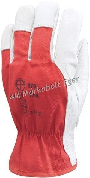878, 879, 880 • puha színborjúbőr • artéria- és körömvédő • piros pamutvászon kézhát • felső csuklógumírozás • tartós sofőrkesztyű nagy igénybevételre • méret: 8, 9, 10-es • csomagolás: 120/10 EU szabvány: EN420, EN388: 3112