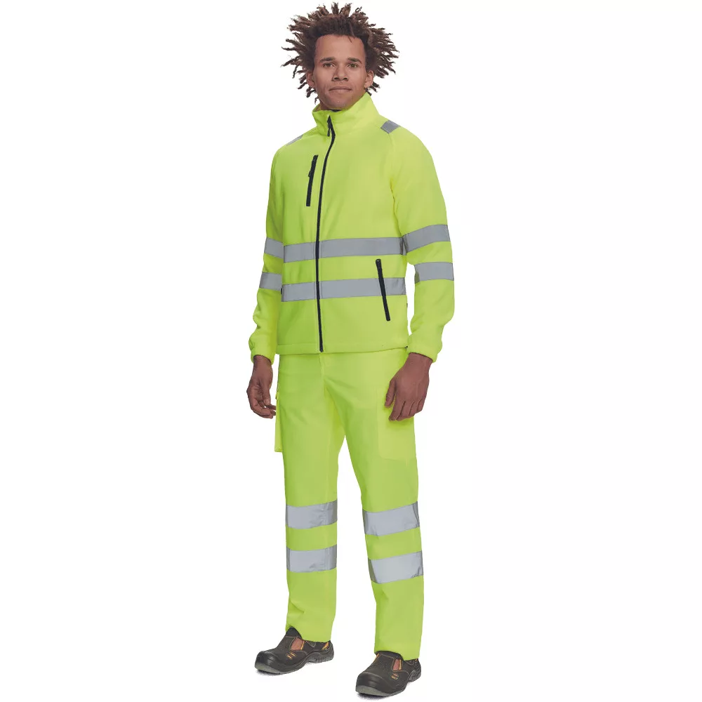 Almeria HV Láthatósági Férfi Polár Pulóver láthatósági sárga színben. A pulóveren 5cm széles fényvisszaverő csíkok találhatóak 2 sorban.