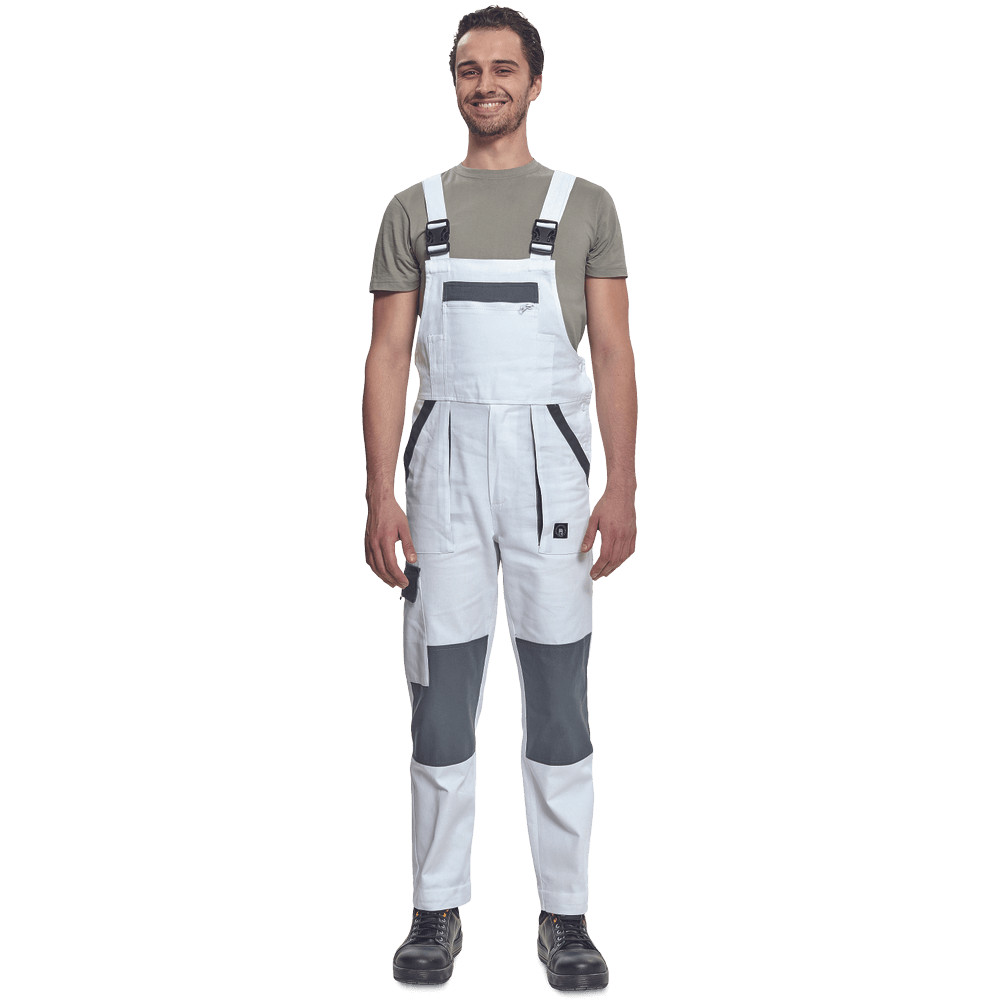 Kantáros férfi munkásnadrág széles vállpántokkal, rugalmas derékkal, megerősített térdrésszel, széles színpalettával, 7 fajta színkombinációval.