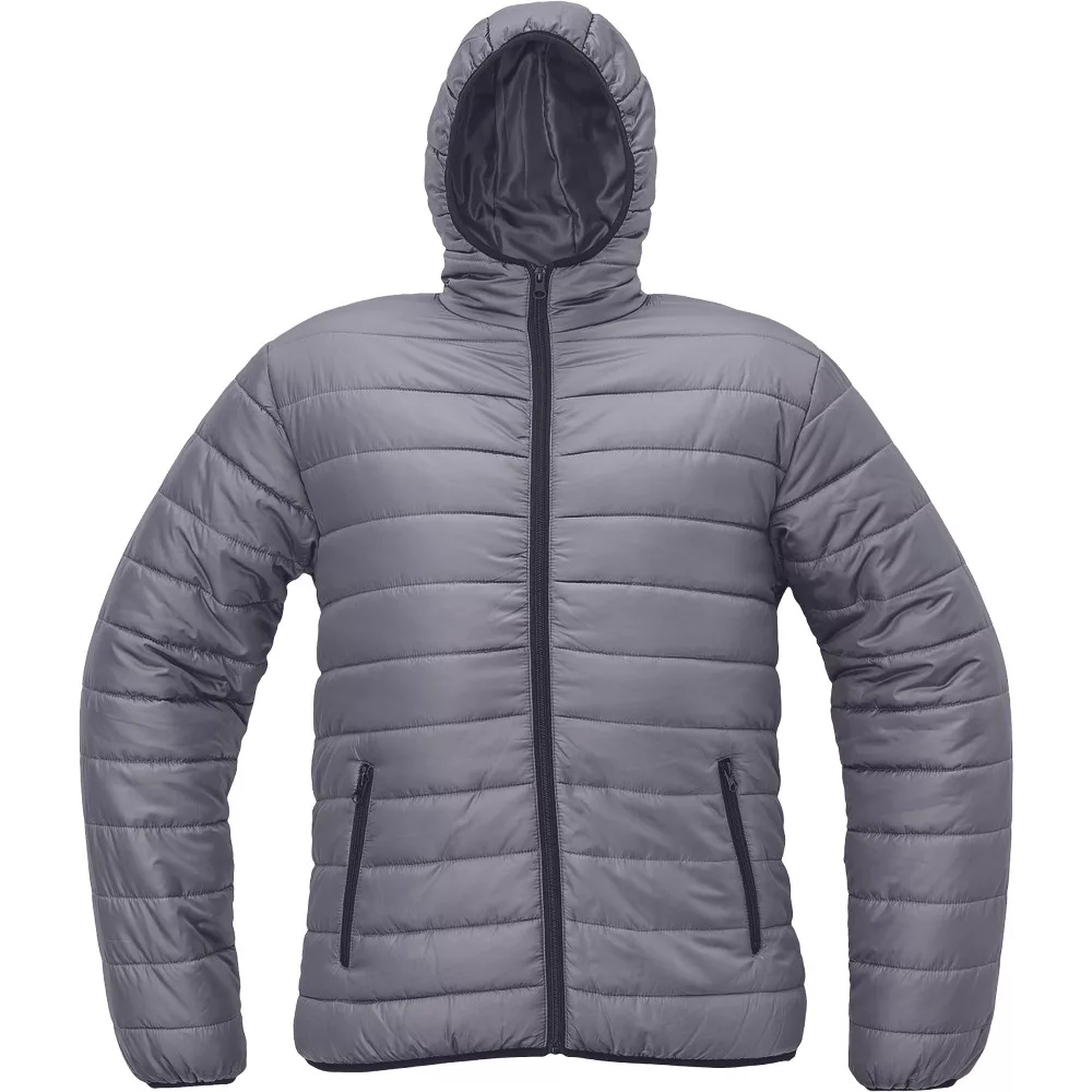 Pehelykönnyű anyagból készült, jól szigetelő, végigcipzáras, kapucnis dzseki, cipzáras zsebekkel, rugalmas alsó szegéllyel.