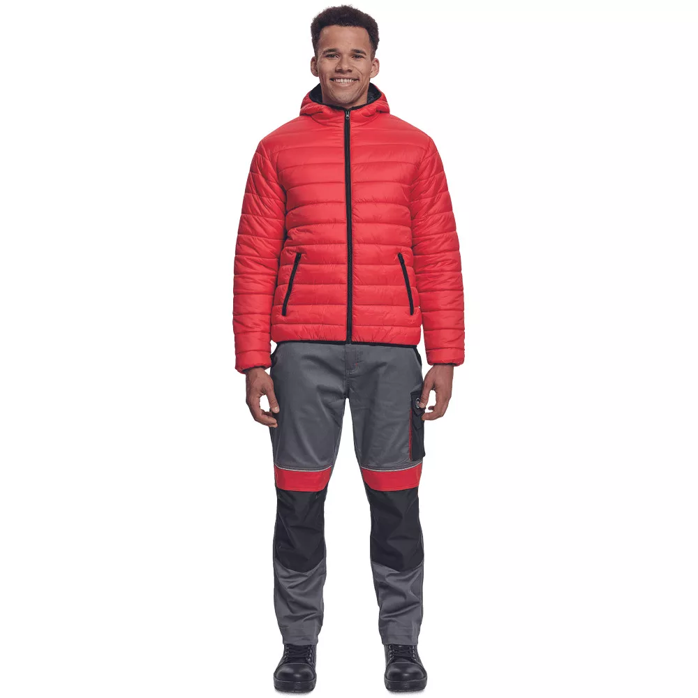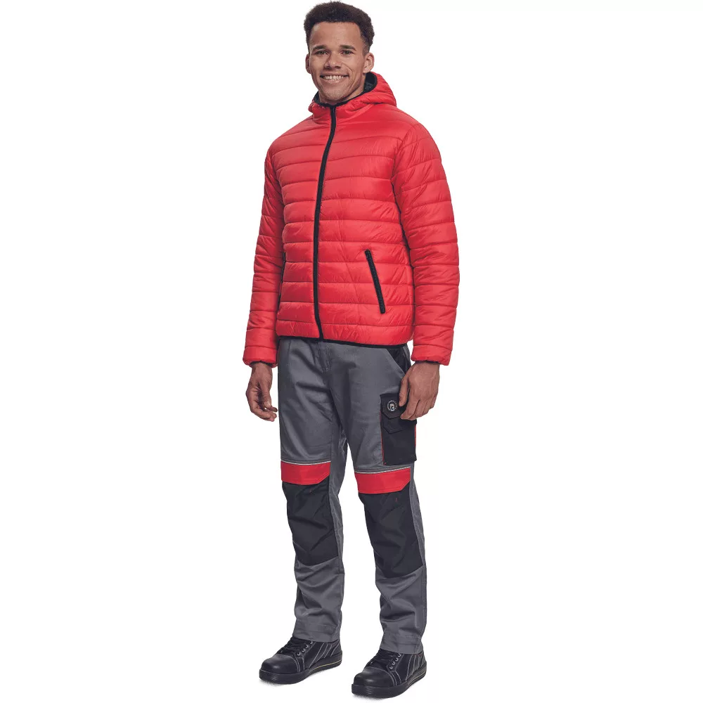Pehelykönnyű anyagból készült, jól szigetelő, végigcipzáras, kapucnis dzseki, cipzáras zsebekkel, rugalmas alsó szegéllyel.