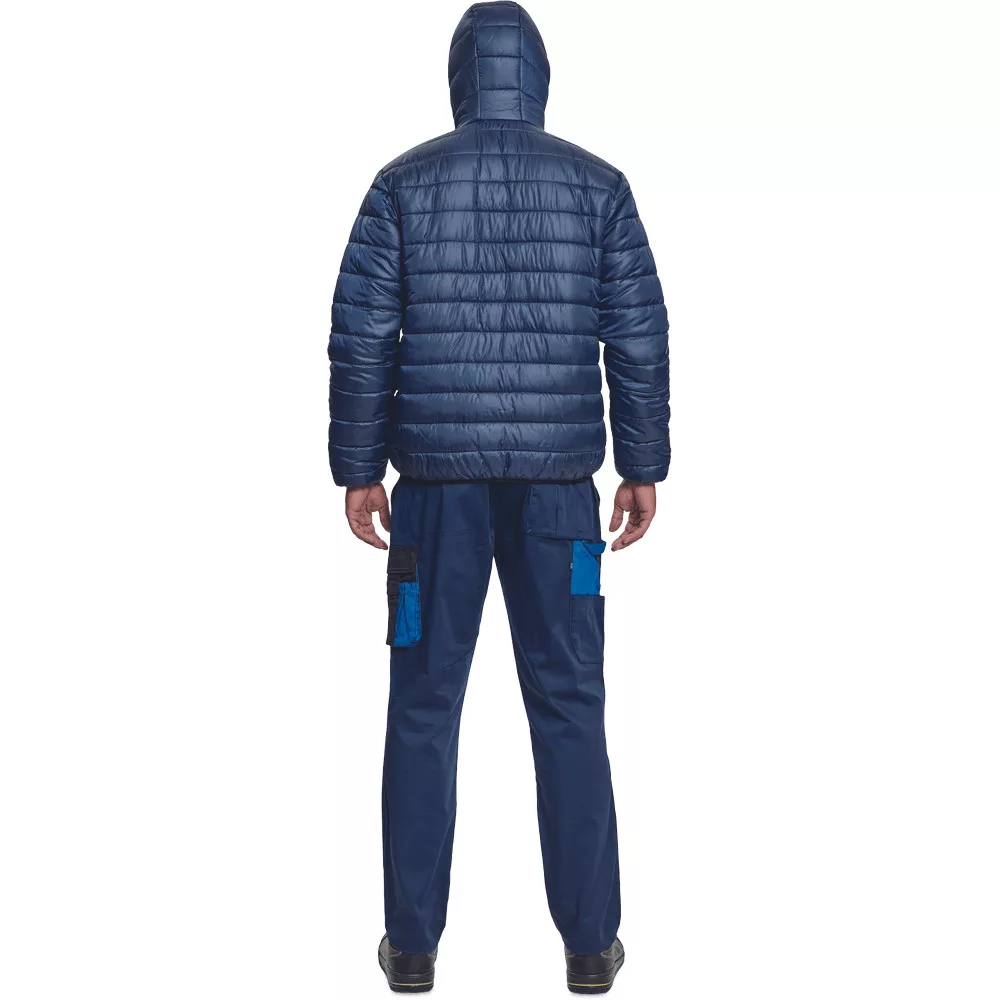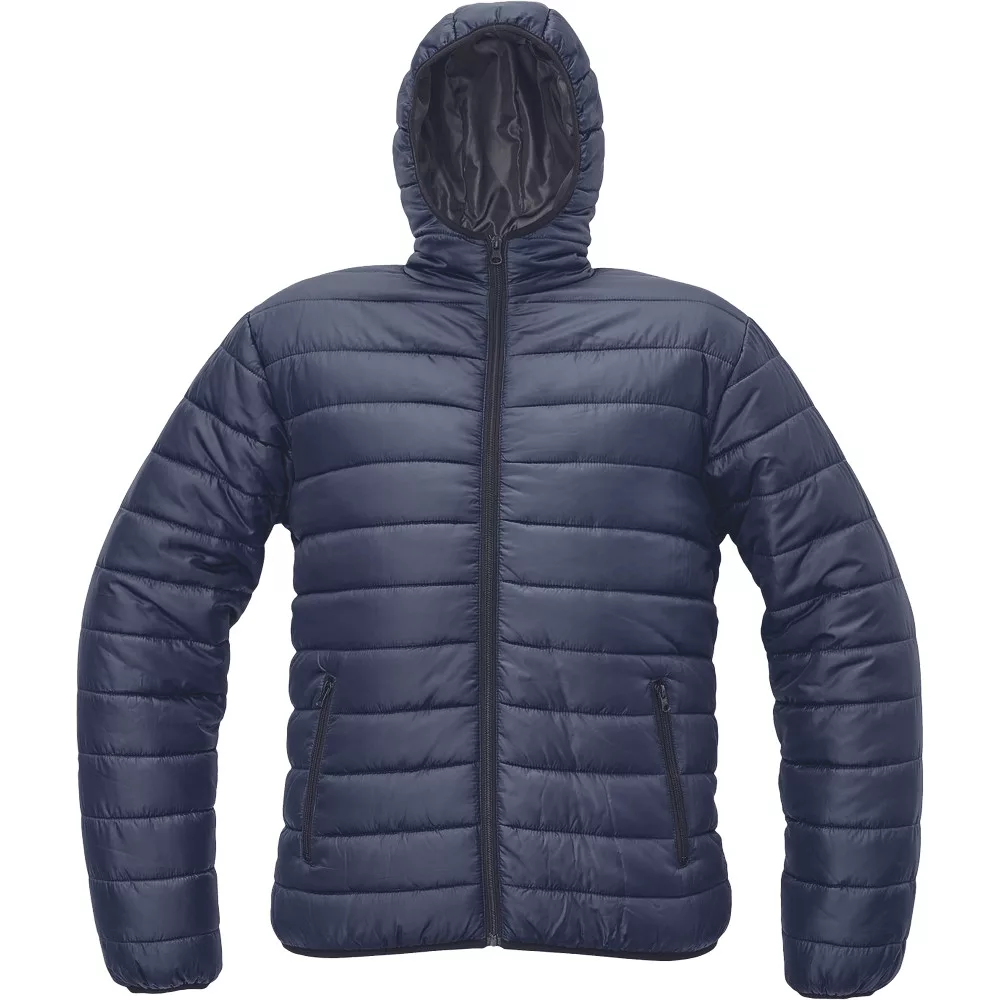 Pehelykönnyű anyagból készült, jól szigetelő, végigcipzáras, kapucnis dzseki, cipzáras zsebekkel, rugalmas alsó szegéllyel.