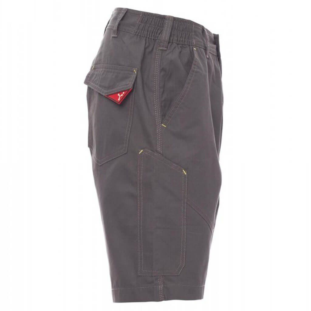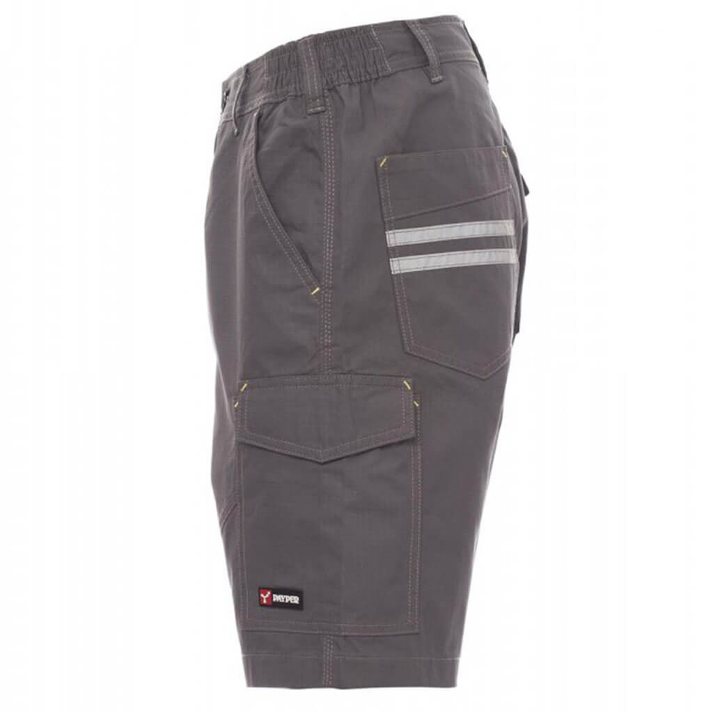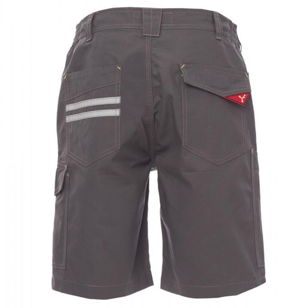 Rugalmas derekú, 100% pamut anyagból készült rövid munkásnadrág, praktikus zsebekkel, fényvisszaverő kiegészítőkkel.