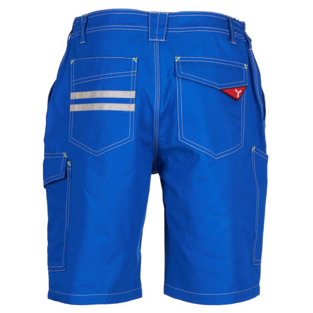 Rugalmas derekú, 100% pamut anyagból készült rövid munkásnadrág, praktikus zsebekkel, fényvisszaverő kiegészítőkkel.