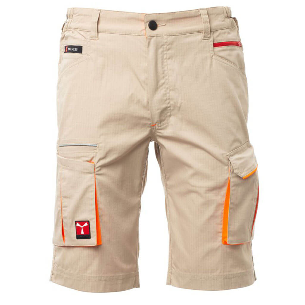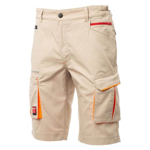 • Sztreccs anyagú rövid munkásnadrág, rugalmas derékkal, körben övbújtatókkal