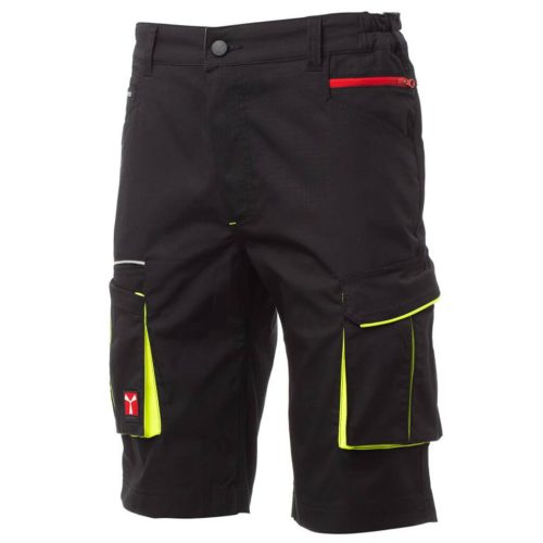 • Sztreccs anyagú rövid munkásnadrág, rugalmas derékkal, körben övbújtatókkal