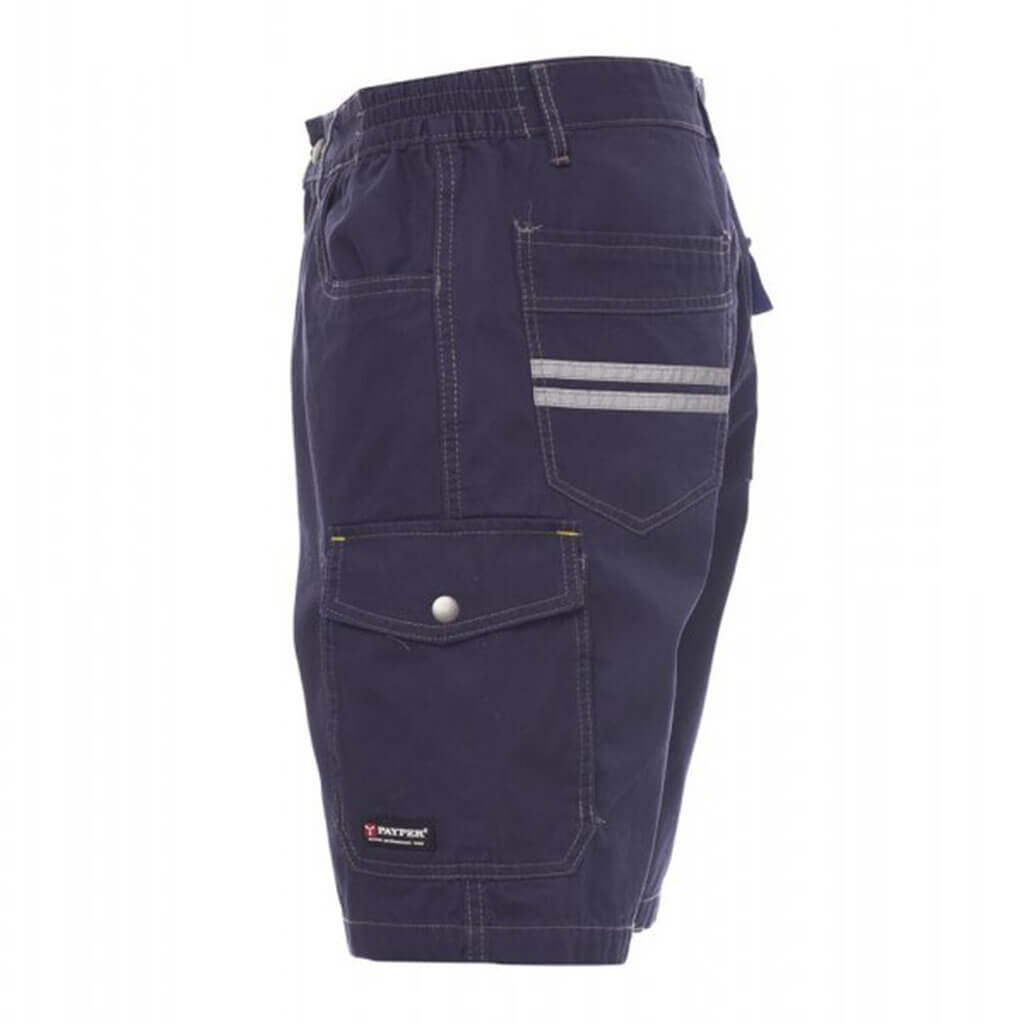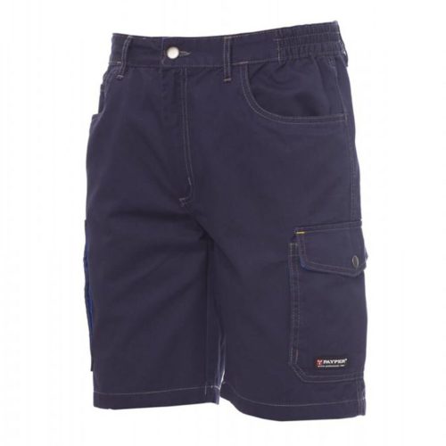 100% pamut anyagból készült rövid munkásnadrág sötétkék színben. Nagy méretű zsebei jól pakolhatóak, praktikusak, farzsebén fényvisszaverő csík található.