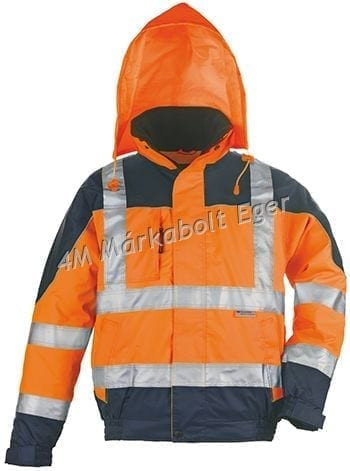 Airport Fluo Jólláthatósági Dzseki 7AIBY sárga/sötétkék • 7AIBO narancs/sötétkék • jól láthatósági alapszín, a szennyeződésnek jobban kitett részeken sötétkék betétekkel • teljesen vízhatlan (vízállóság: 5000 mm) Oxford 300D poliészter, lélegző PU bevonattal (páraáteresztő képesség: 3000 mvp) • 180 g/m2 poliészter meleg bélés, selymes 210T taft belső • 3M™ Scotchlite® (5 cm széles) fényvisszaverő csíkok • gallérba rejtett, állítható kapucni, gumizott ujjak- és derék • egy belső-, két oldal-, két felső- és egy telefonzseb, patentos hajtókával • állítható mandzsetta és -aljrész • hegesztett vízhatlan varrások • méret: M, L, XL, XXL (sárga változatnál S és XXXL is) EU szabvány: EN340, EN343 (3.2), EN471 (2.2)