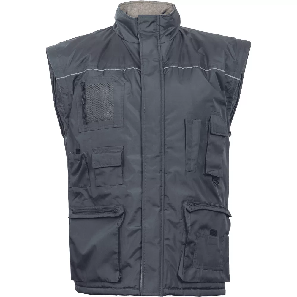 Vízhatlan külsőrésszel készült, meleg bélésű, szélálló, lélegző anyagú levehető ujjú télikabát.