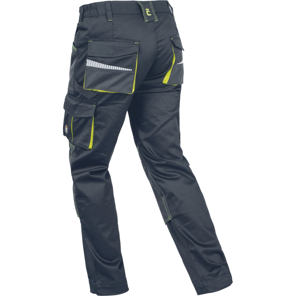 • Kényelem: A spandex tartalomnak köszönhetően a nadrág anyaga rugalmas, jól követi a test mozgását, nem korlátoz az aktív munkavégzésben sem