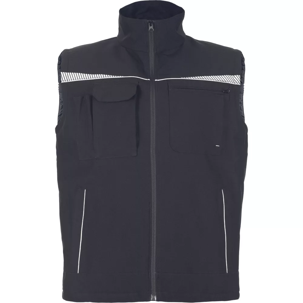 • Végigcipzáras kivitelű, magasított állógallérral rendelkező téli munkásmellény