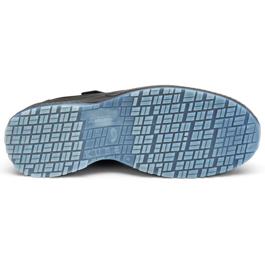 KUBE kétrétegű poliuretán talpszerkezete antisztatikus, hidrolízisálló (ISO 5423:92), olaj- és kopásálló, ütéscsillapító (anti-shock), csúszásbiztos kialakítású (SRC).