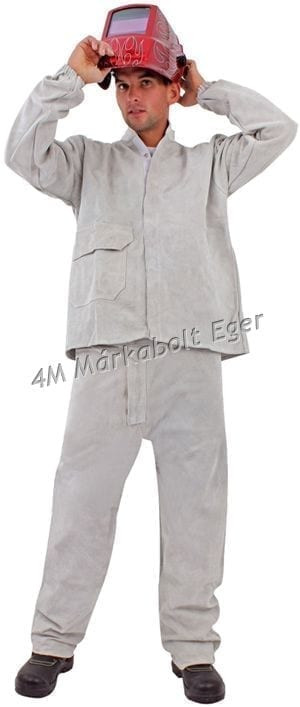 BŐR HEGESZTŐRUHA 57455-467 • egybeszabott, 1,4 mm vastag marha hasítékbőr • véd hőha­tás, szikrák, fémolvadékok, valamint 10 sec.-ig közvetlen láng­hatás ellen • munkaruhára is felvehető, tépőzáras és paten­tos záródás • kabát (57455, 57456, 57457, 57458): színbőr álló gallér, fedett zseb, hónaljbetét • deréknadrág (57465, 57466, 57467): derékrészen bőr övbújtatók, egyenes szabás • méret: L, XL, XXL (kabát XXXL-ben is) EU szabvány: EN ISO 11611:2008