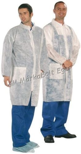 LÁTOGATÓKÖPENY 41113-125 41113-15 patentos záródású köpeny • 41123-25 cipzáros záródású köpeny • polipropilén anyag, 42 g/m2 • 110 cm hosszú • csuklónál gumírozott • szellőző kivitel • méret: L, XL, XXL EU szabvány: EN340
