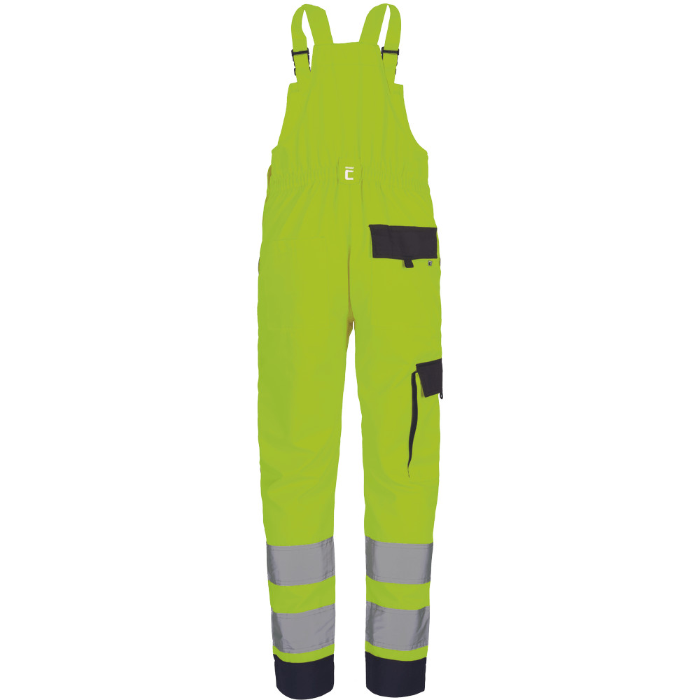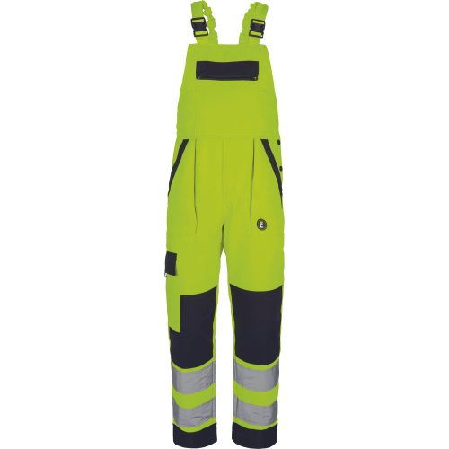 Kiváló ár/érték arányú láthatósági kantáros nadrág figyelemfelkeltő színekben és széles, dupla soros láthatósági csíkkal a lábszáron.