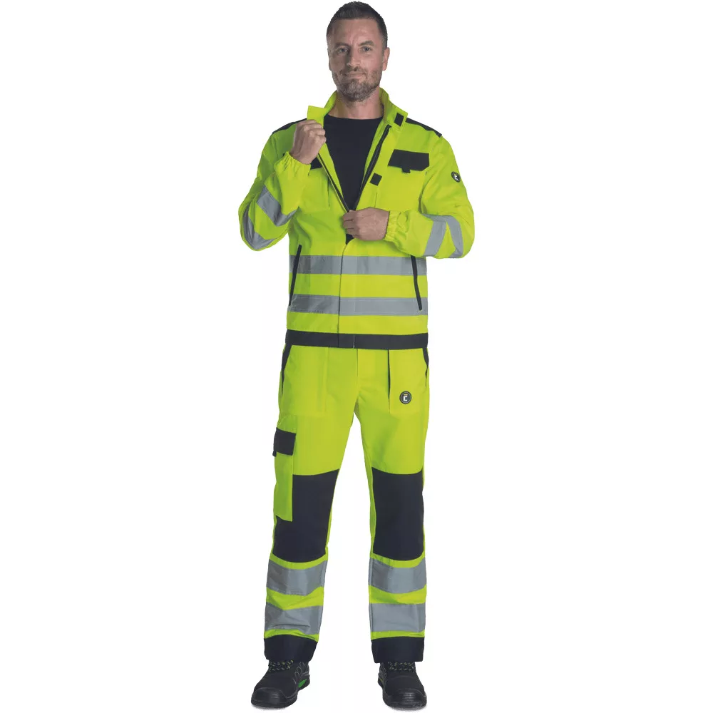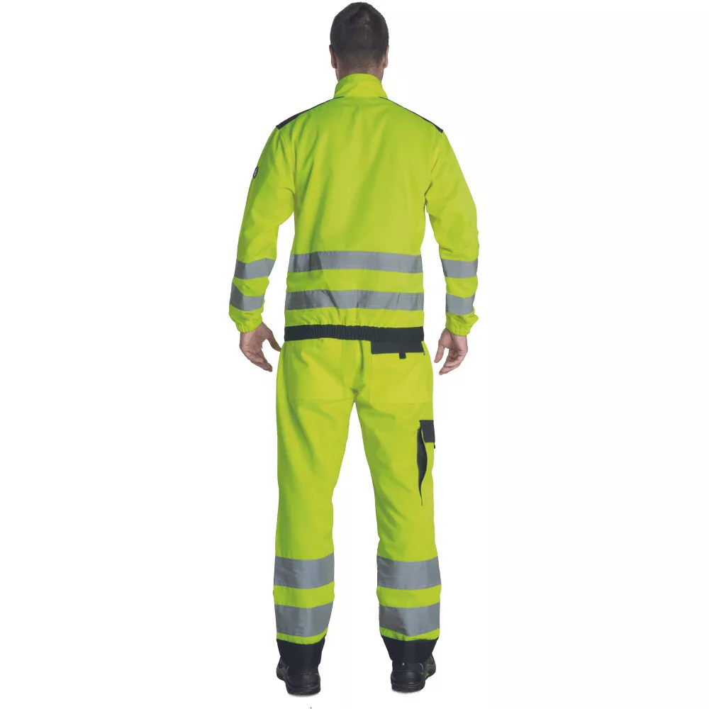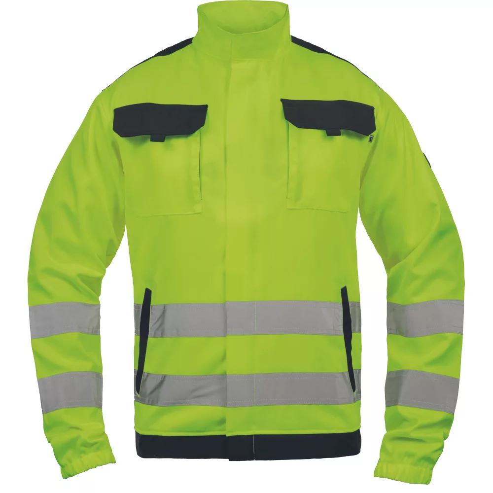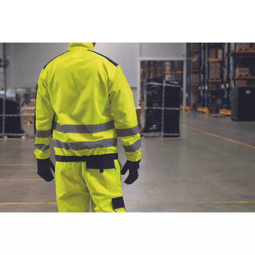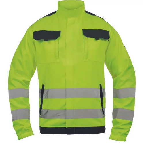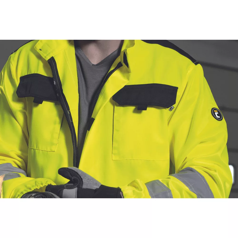 Kiváló ár/érték arányú láthatósági munkavédelmi kabát, figyelemfelkeltő színekben és széles, dupla soros láthatósági csíkokkal az ujjak végén és a derékrészen.