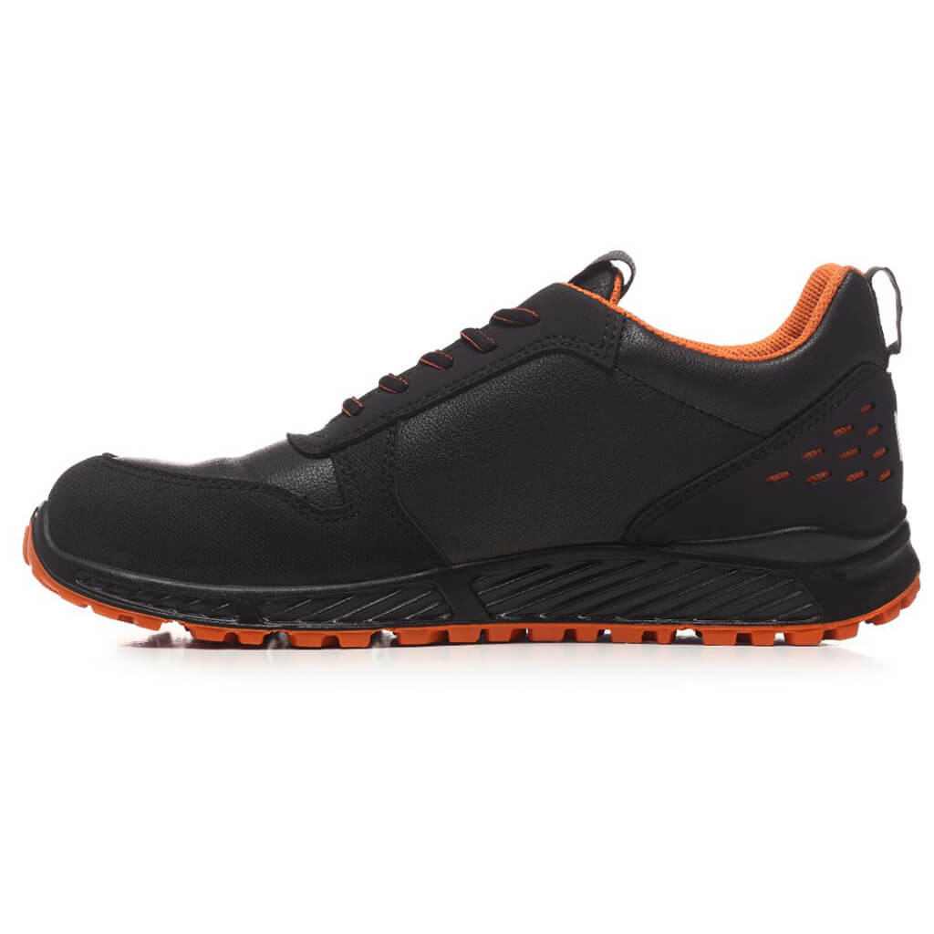 A cipő 100%-ban fémmentes, ezért könnyebb és rugalmasabb viseletet biztosít. A kompozit lábujjvédelem és a KEVLAR® átszúrásbiztos középtalp gondoskodik a megbízható védelemről, míg a kétrétegű PU talp stabil tapadást és jó ütéscsillapítást nyújt.