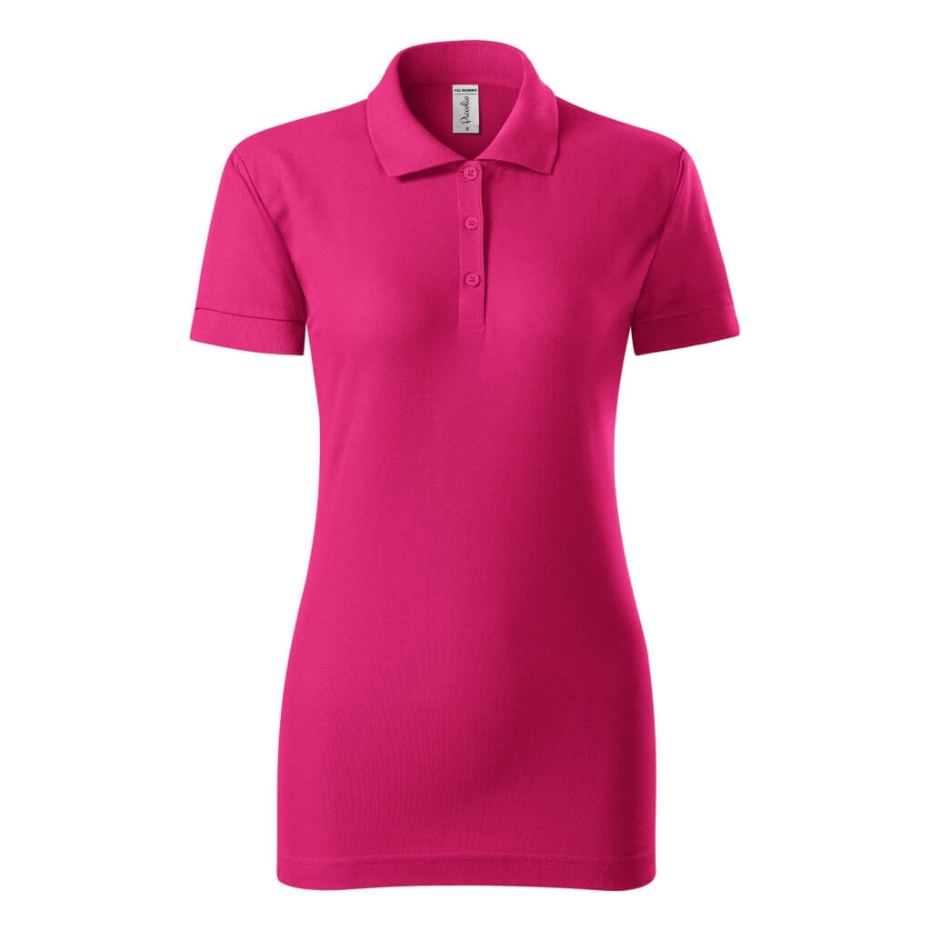 P22 Piccolio Joy galléros női póló Női galléros póló, szűkített szabású oldalvarrással. 1:1 bordás kötésű gallérral és ujjvégekkel, továbbá keskeny nyílás 3 gombbal a szövet színében. A belső nyakkivágás szalaggal van díszítve. Vállaknál rögzítő varrás található, illetve a nyakában a címke kitéphető. Anyaga: 65% poliészter, 35% pamut, 170g/m2. Mosható: 40°C-on. Ajánlott felhasználás: digitális nyomás, hímzés, filmnyomás, transzfer nyomás