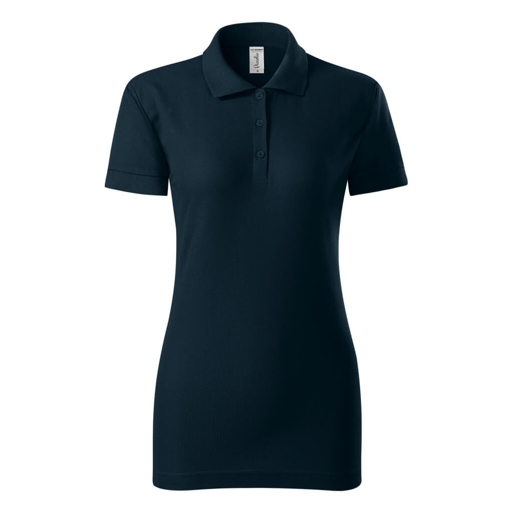 P22 Piccolio Joy galléros női póló Női galléros póló, szűkített szabású oldalvarrással. 1:1 bordás kötésű gallérral és ujjvégekkel, továbbá keskeny nyílás 3 gombbal a szövet színében. A belső nyakkivágás szalaggal van díszítve. Vállaknál rögzítő varrás található, illetve a nyakában a címke kitéphető. Anyaga: 65% poliészter, 35% pamut, 170g/m2. Mosható: 40°C-on. Ajánlott felhasználás: digitális nyomás, hímzés, filmnyomás, transzfer nyomás