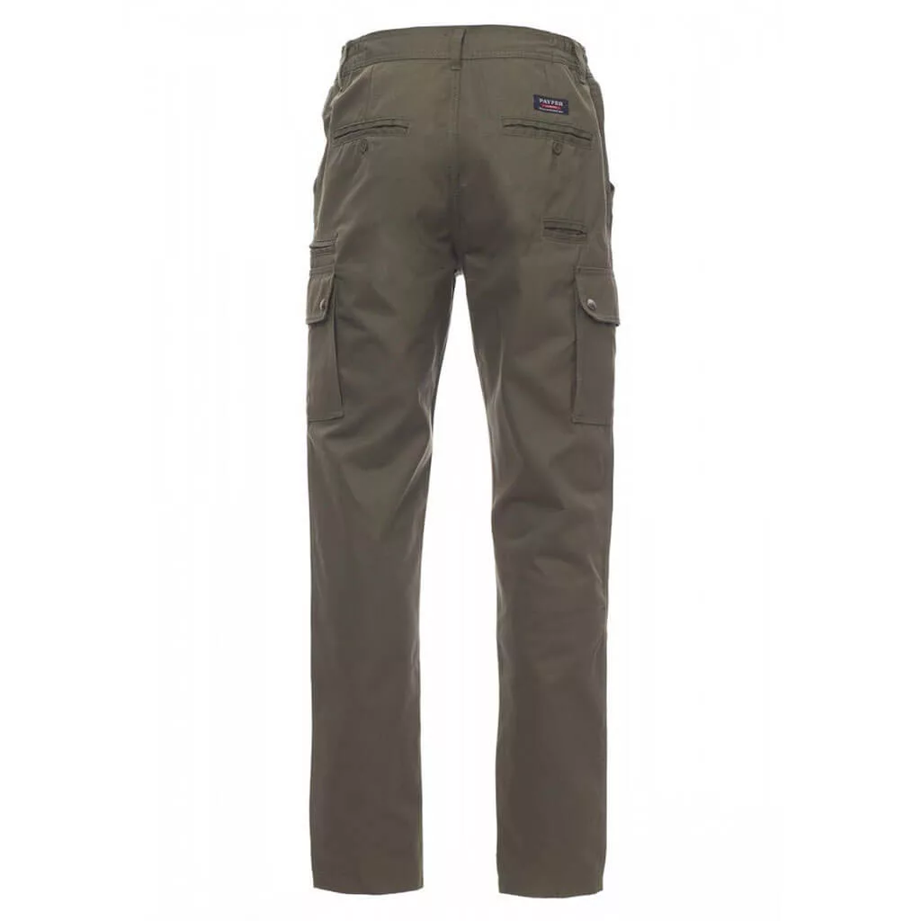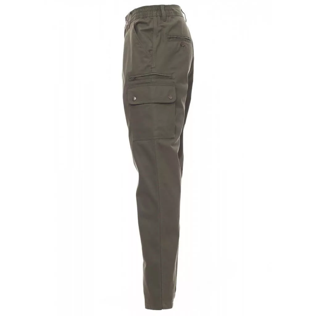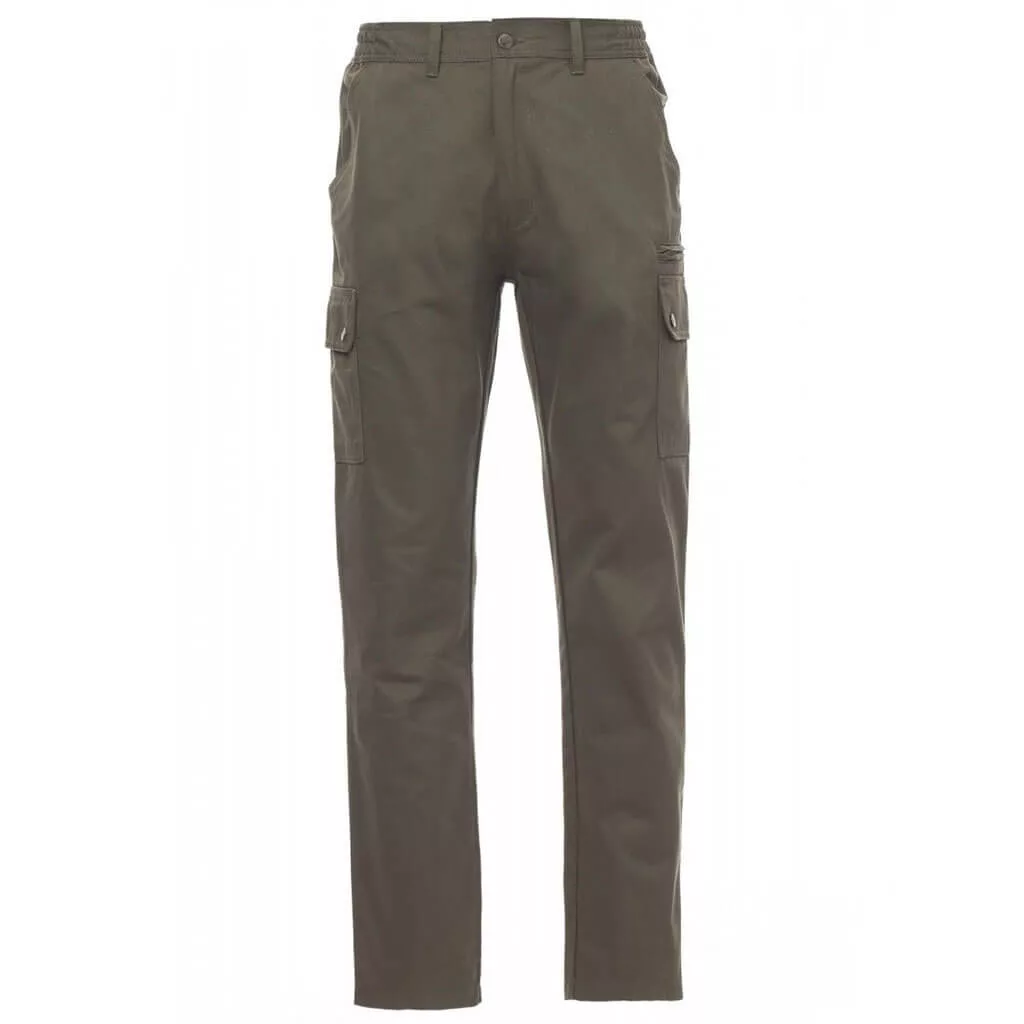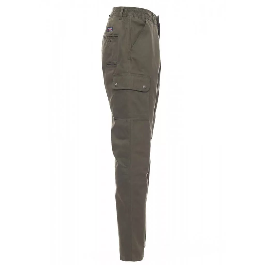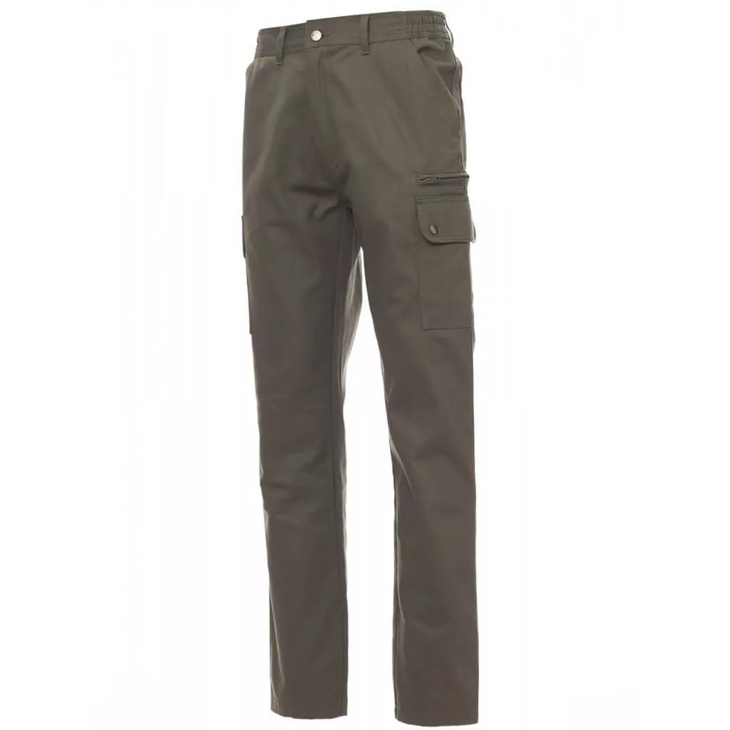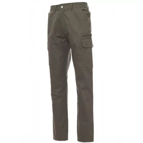 Praktikus zsebekkel ellátott, oldalt rugalmas derekú férfi munkásnadrág 100% pamut anyagból.