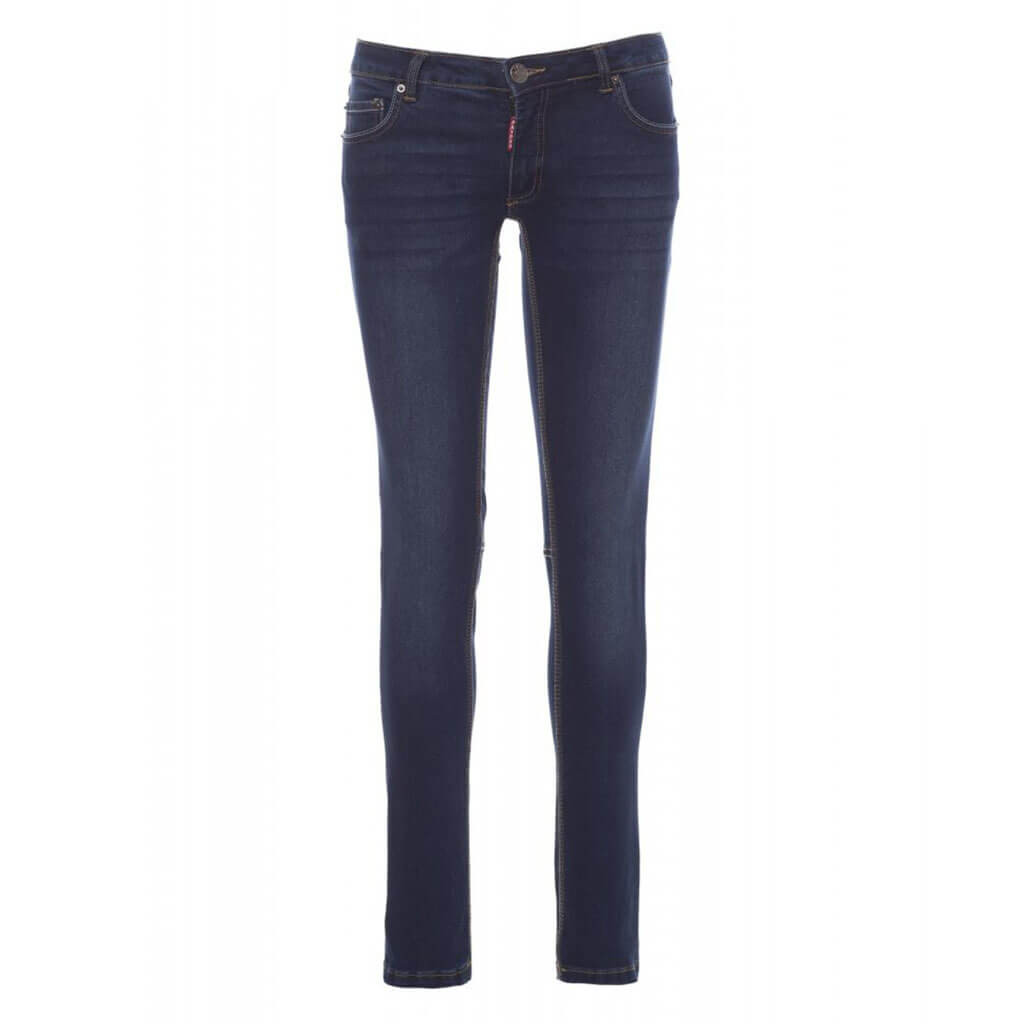 Női farmernadrág, erős és tartós triplaszálas varrással az igénybe vett helyeken. Klasszikus zsebekkel, rugalmas derékkal.
