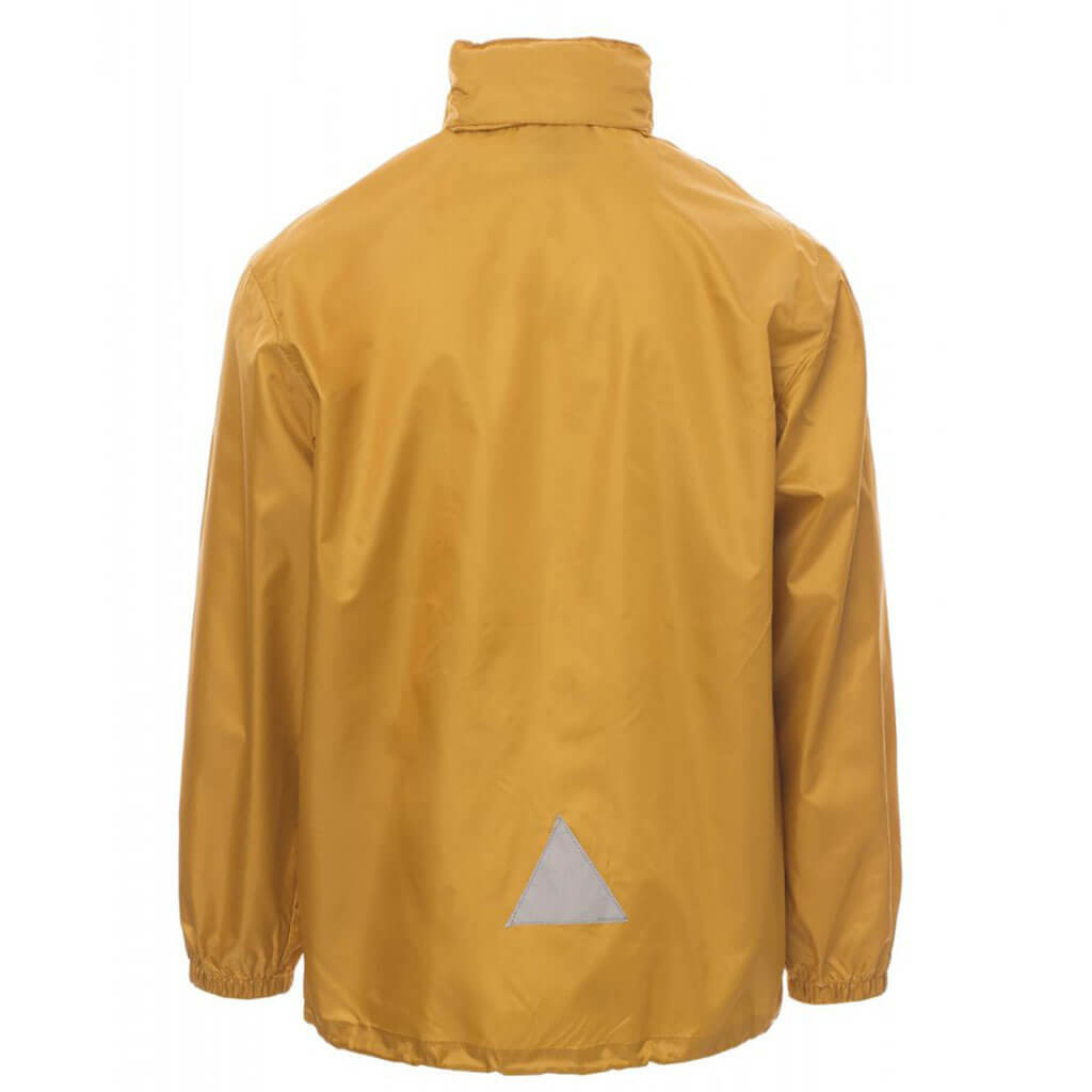 PU bevonatos szél és vízálló dzseki gumírozott mandzsettával, reflex elemekkel, gallérba rejthető kapucnival.