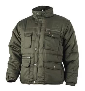 Polena Sleeve Kabát            XPSL • 35% pamut, 65% poliészter anyag • levehető ujjakkal mellénnyé alakítható • 200 g/m2 poliészter bélés, kényelmes poliamid belső • szín: zöld, kék, fekete • álló gallér két patenttal • derekat védő hosszított hátrész • két lenti-, két cipzáros-, kettő telefon- és egy belső zseb • cipzáros plusz patentos záródás • méret: S, M, L, XL, XXL, XXXL EU szabvány: EN340:2003 (TÜV 0197) cikkszám: kék XPSLB, zöld XPSLV, fekete XPSLN