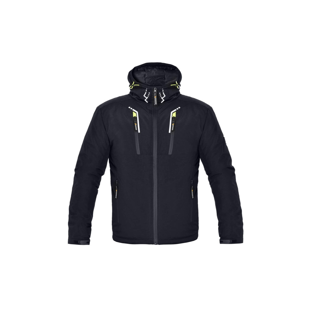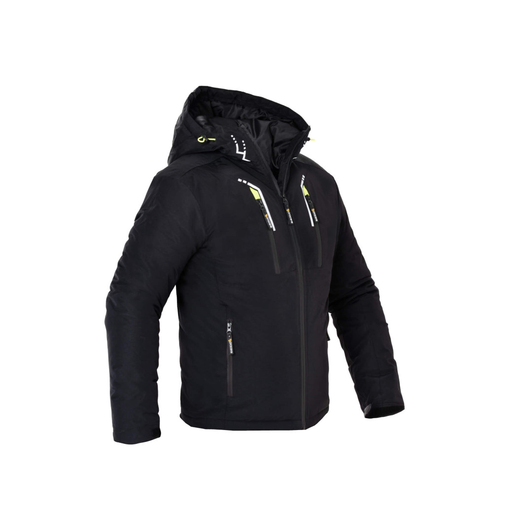 Modern, szűkített szabású fekete színű procera luma téli munkakabát steppelt hőszigetelő béléssel.