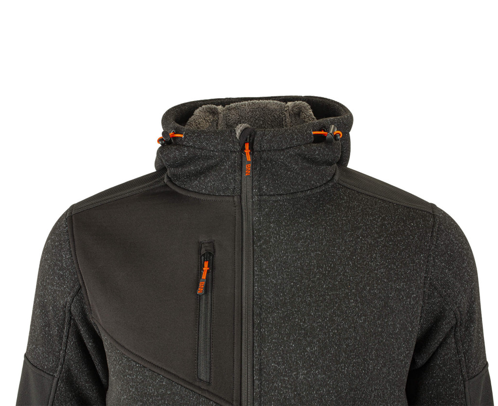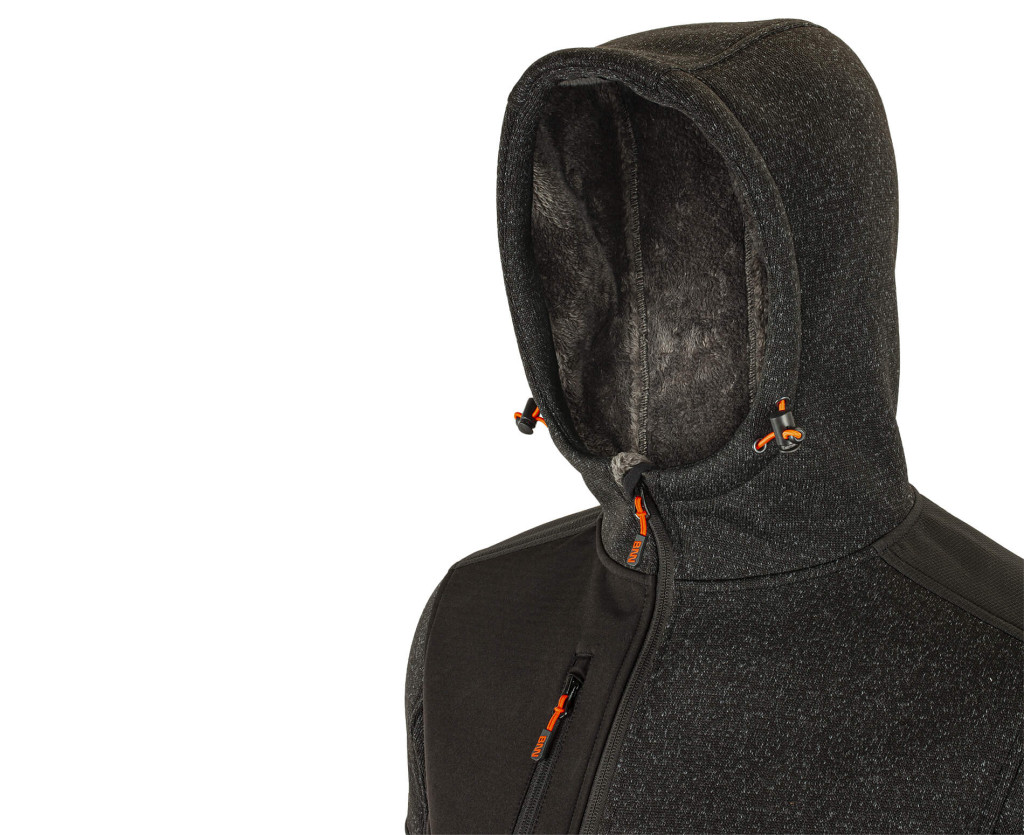 Állítható kapucnival rendelkező, kellemes melegérzetet biztosító szőrmés szabadidő pulóver. Praktikus, cipzáras zsebekkel, fényvisszaverő elemekkel. Ujjai tépőzárasok, dereka és kapucnija is szűkíthető