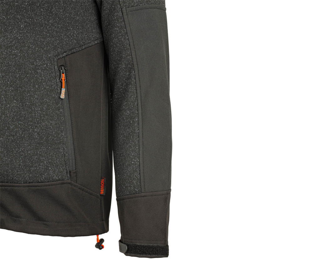 • Kiegészítő anyag: 95% poliészter (softshell), 5% elasztán, 350g/m2