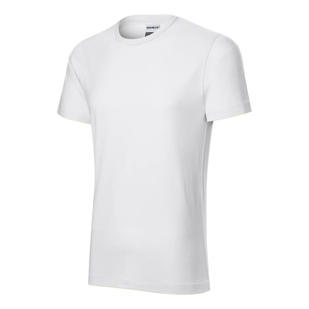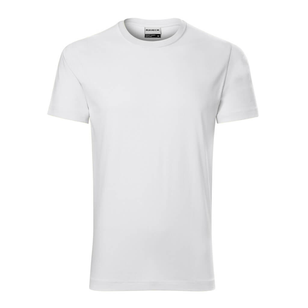 R01 Rimeck Resist férfi póló Férfi póló, előpréselt, magas hőmérsékleten ellenálló pamut anyagból. A póló mosható 95 ° C-on (fehér) és 60 ° C-on (színes). A póló oldalvarrással,  1:1 bordás kötésű nyakszegéllyel készült, továbbá megerősített vállpánttal is rendelkezik. Anyaga: 100% pamut, 160 g/m2. Ajánlott felhasználás: digitális nyomás, hímzés, filmnyomás, transzfer nyomás