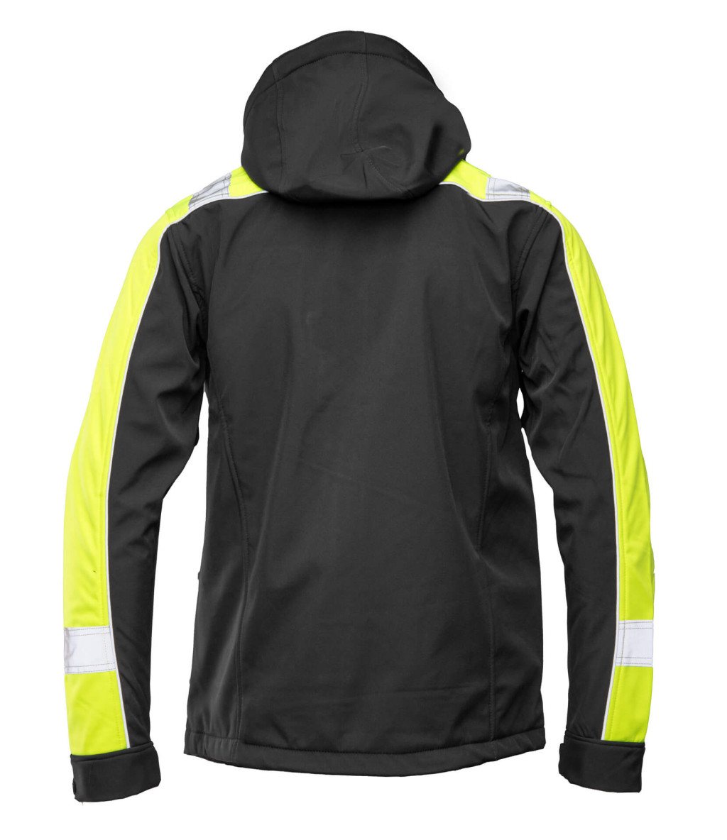 • Egyenes szabású, softshell anyagból készült fényvisszaverős kabát