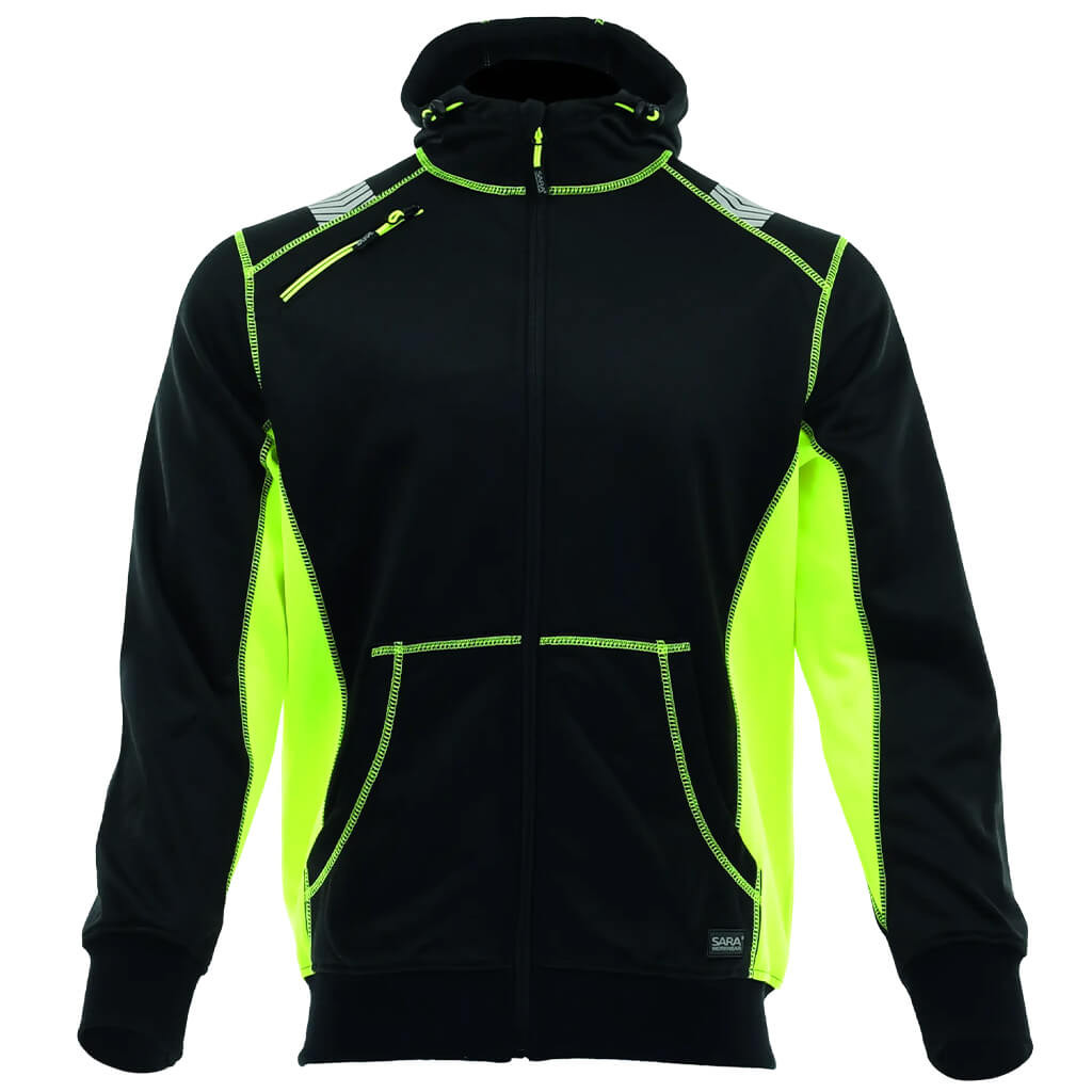 • Karcsúsított szabású, rugalmas anyagú kapucnis pulóver láthatósági csíkkal