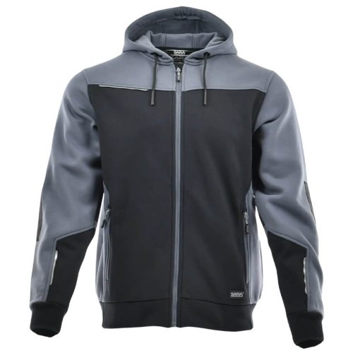 Sara Comfort Plus Kapucnis Munkás Pulóver Fekete/Szürke - S