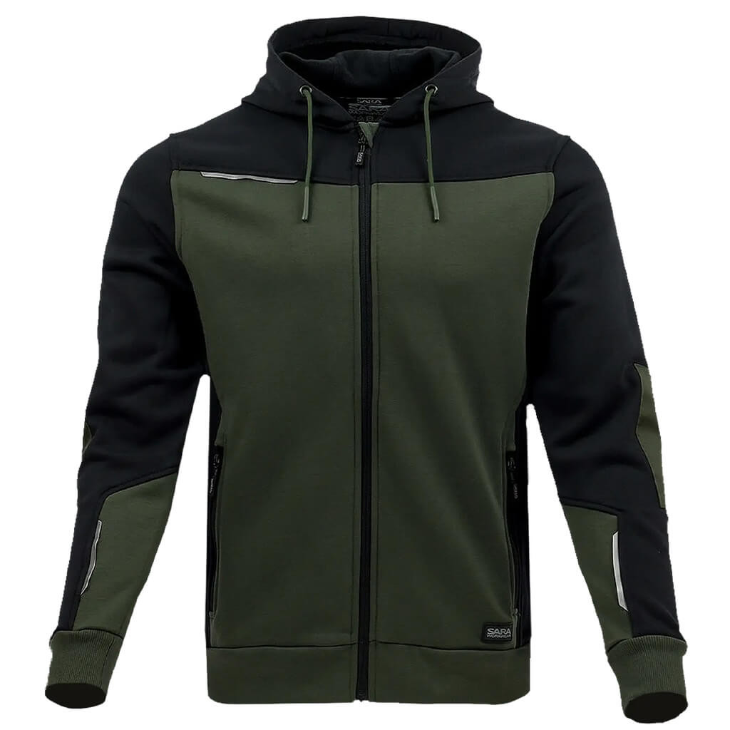 Sara Comfort Plus Kapucnis Munkás Pulóver Zöld/Fekete - S