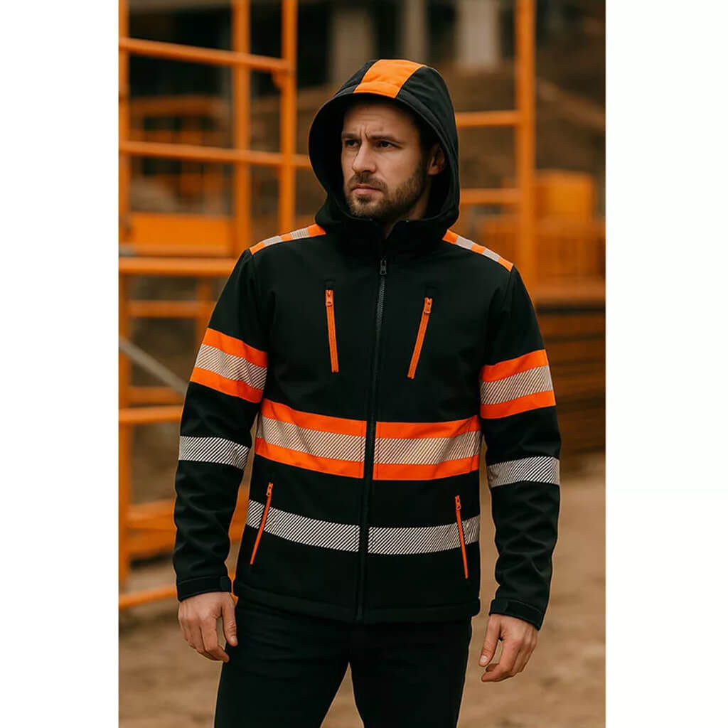 Az urgent 931 láthatósági kapucnis softshell kabát ideális választás kültéri munkákhoz.
